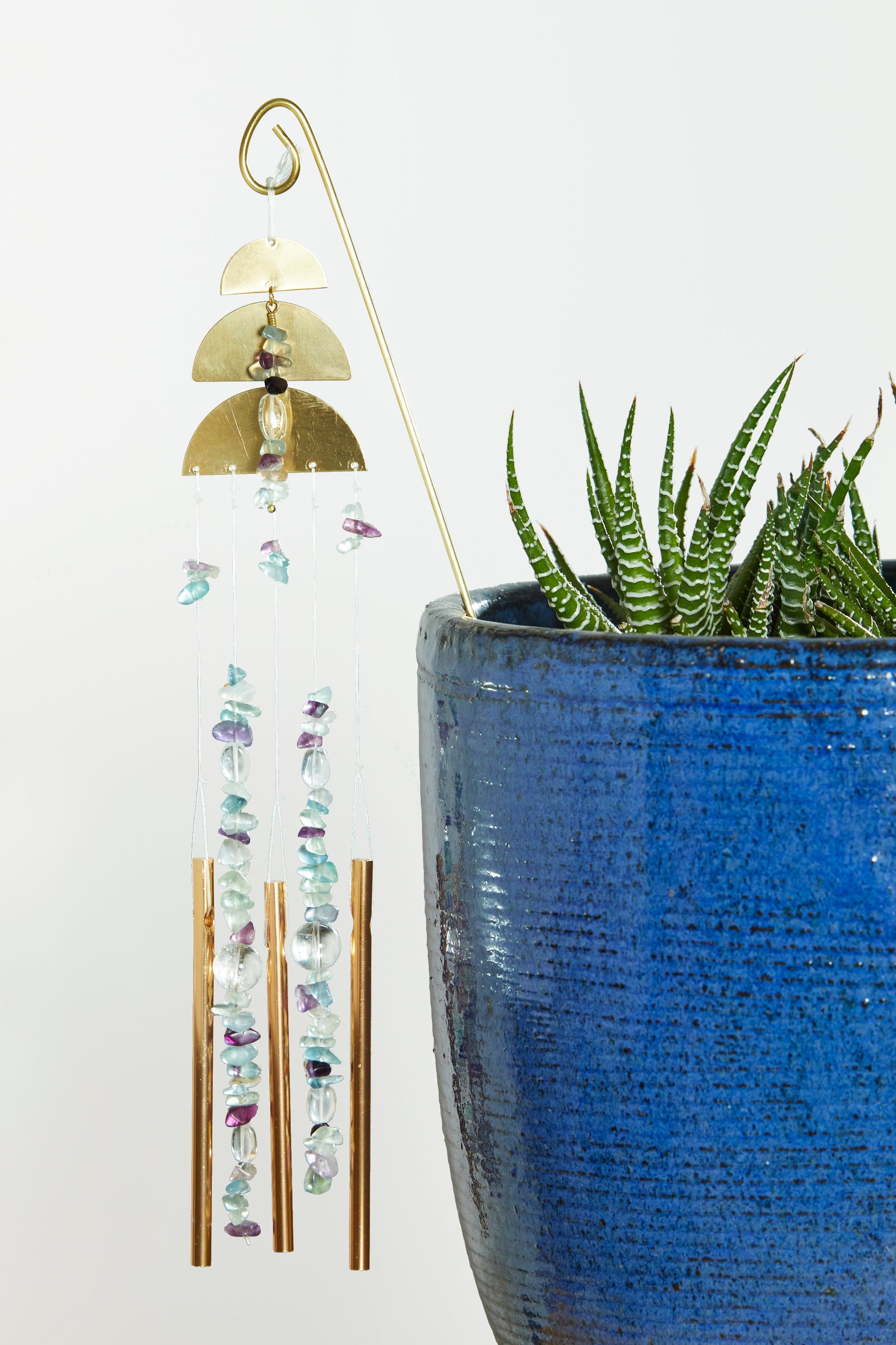 Adorn your plants and adorn your home. The Rainbow Fluorite plant chime is linked to/ good for: Capricorn, Aquarius, Virgo, Pisces, Libra, Taurus
